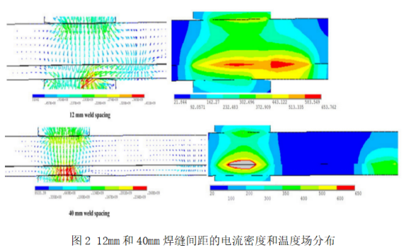 案例3对铝合金航天用舱体结构进行了焊接过程的数值模拟,采用平板结构进行了有限元模型的建立与校核,对舱体结构进行了建模,研究了焊接顺序、焊接工艺参数对焊后最大变形量的影响及构件焊后变形趋势。案例4研究了不等厚2219/5A06异种铝合金电阻点焊的分流特性。试验和ANSYS模拟表明,由于铝合金体积电阻低,增大焊缝间距难以缓解分流效应,提高焊接电流是是抑制分流的主要措施。