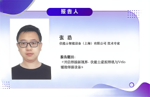 3、伏能士智能设备(上海)有限公司技术专家 张浩 带来“启焊接新视界- 伏能士虚拟焊机与Velo辅助焊接设备”的报告;