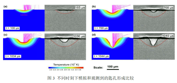 案例5利用COMSOL软件建立了匙孔和熔池模型,通过光线追踪算法计算激光能量沉积。该模型能够准确再现实验结果,并揭示了在由热导焊向深熔焊转变过程中,束流俘获与多次反射对焊接稳定性的影响。案例6采用COMSOL对铝合金激光点焊过程进行了模拟,研究了激光脉冲波形对小孔和焊接过程不稳定性的影响。结果表明,曲率效应、Marangoni效应和Darcy阻尼力是导致失稳的主要因素,其中曲率效应和Darcy阻尼力是最主要的因素。