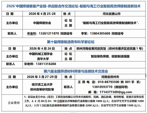主办:天津市焊接行业协会;天津机械工程学会焊接分会 地址:南开区红旗路196号 电话(传真):022-27362441